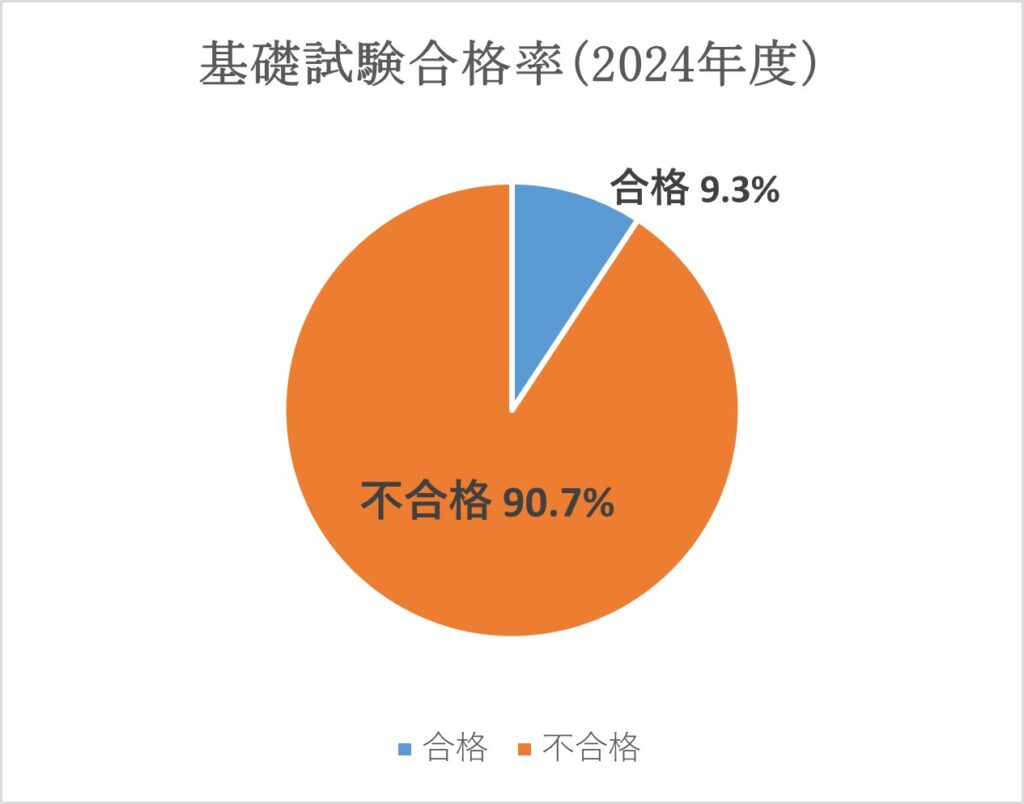 基礎試験は難易度が非常に高く、特に「試験ルート」で受験した場合の合格率はわずか8.8%(2024年度実績)と、かなり低い水準となっています。